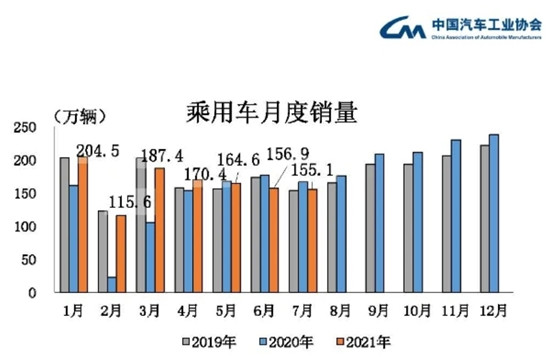 1-7月,汽车产销1444万辆和1475.6万辆,同比增长17.2%和19.3%,增速比1-6月继续回落。与2019年同期相比,产销同比分别增长3.4%和4.2%,产量增幅与1-6月持平,销量增幅比1-6月回落0.2个百分点。