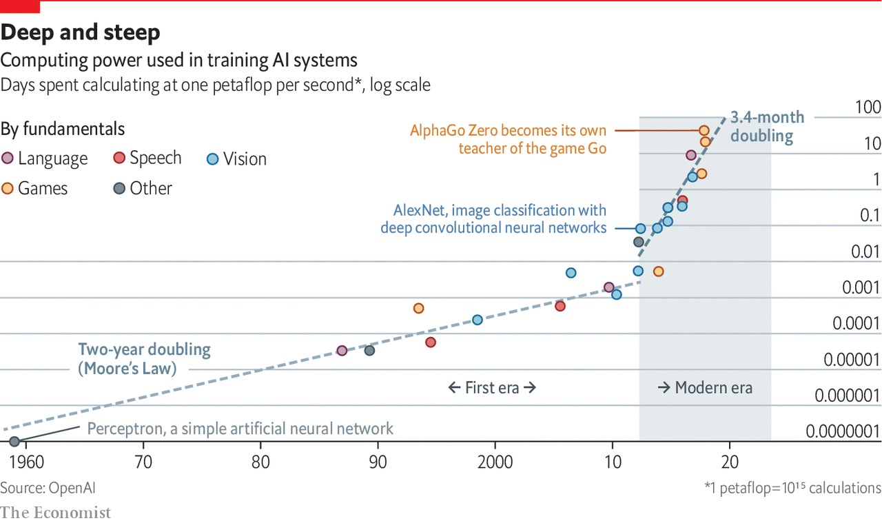 AI对计算能力的需求呈指数级增长;图源:TheEconomist