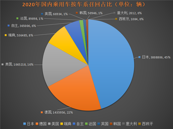 2020年,国内涉及三菱、丰田、雷克萨斯、本田、讴歌、马自达6家日系品牌的共计2741469辆乘用车,因 “燃油泵隐患可致车辆中途熄火”问题而被召回,占全年召回总量的41.40%之多;如果加上早在2019年就因相同问题而召回的77112辆马自达CX-5,这一召回总量将升至2818581辆。