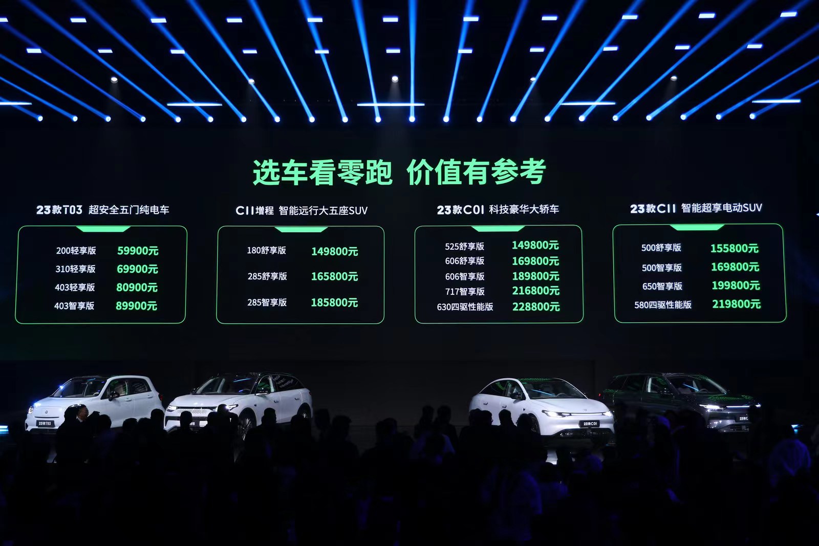 支撑零跑向上探索的C01,2023款售价为14.98万-22.88万元,相比于原来的19.38-28.68万元,下调幅度最高接近6万元。