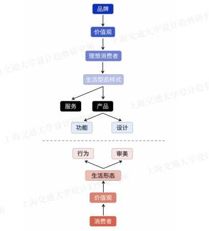 根据“品牌镜像”模型,消费者有自己的价值观、生活形态并表现为行为和审美,它所映射的是产品的功能。傅炯将这一模型镜像处理后表示,不同的品牌有它的价值观,用理想消费者形成生活形态的样式,推荐给目标客户,这个生活样式包括了产品和服务。