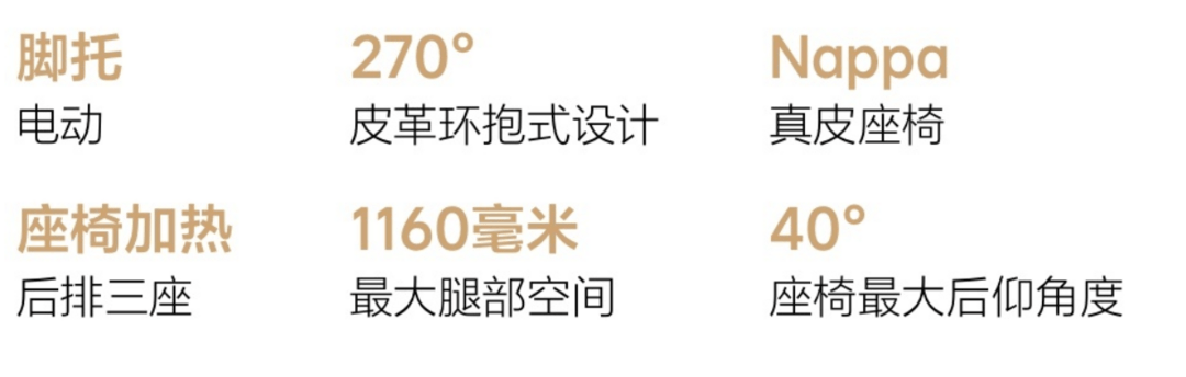 理想L7独创了“一键二排皇后座椅”,后排由电动调节的后排豪华座椅、电动脚托、270度皮革环抱式设计、Nappa真皮、后排三座座椅加热、两侧座椅通风,以及豪华中央手枕共同组成。启动一键皇后座模式,二排右侧舒展型腿部空间最大达到1160mm,靠背角度最大可向后躺倒40度。