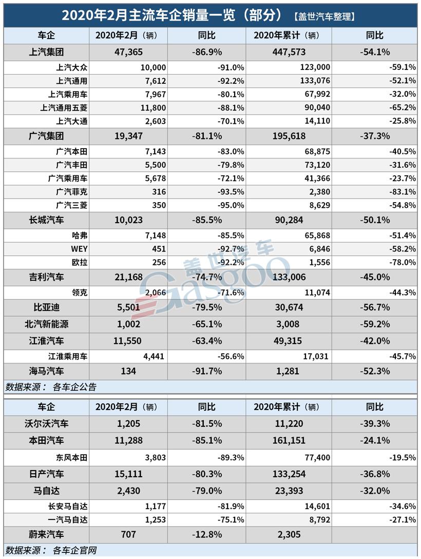 【数读车市】22家车企2月销量一览:平均下跌近八成,破万者寥寥无几
