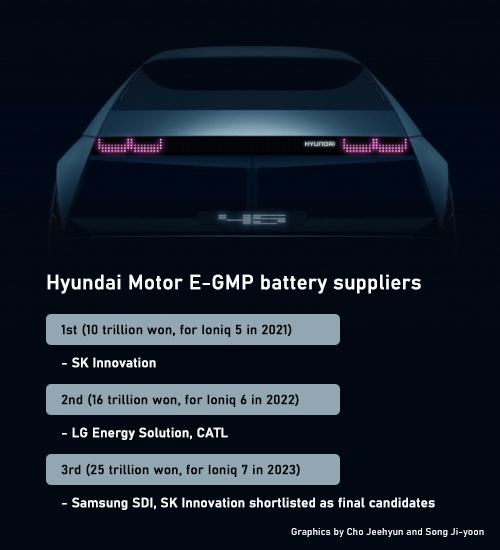 基于E-GMP平台打造的车型采用的首批电池将由SK Innovation供应,第二批将由LG Energy Solution和中国的宁德时代供应,电池价值分别为10万亿韩元和16万亿韩元。